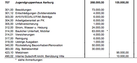 Bei der Liegenschaft scheint es sich um die "Villa Jugend" , auch Jugendgruppenhaus genannt, in Aarburg zu handeln. Es ist im Besitz der Kantonalkirche. Sein Budget für 2012 ist stark defizitär: