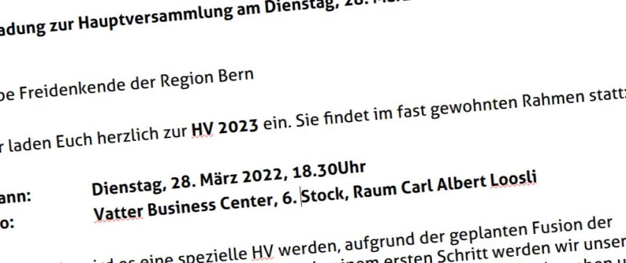 Ab 18:30 Hauptversammlung der Freidenkenden Region Bern mit anschliessender HV des fusionierten Vereins. Details wurden den Mitgliedern zugestellt.